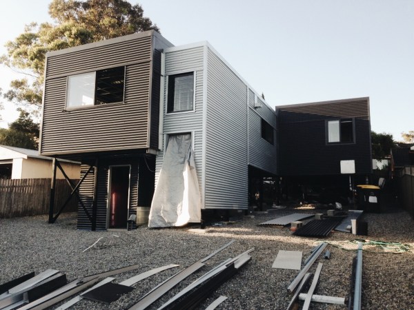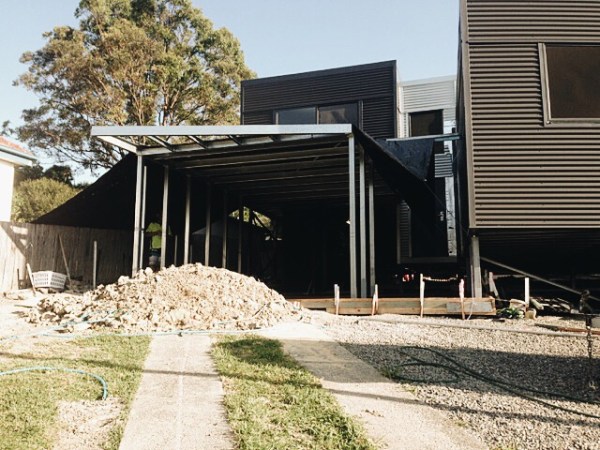 The design also had to be simple as I planned to build it myself as an owner builder, the structural system is based on the “Storage Pod” which our local colorbond supplier sells (Steeline Hunter). The floor/ceiling/roof framing is a simple purling system of standard purlin sections with a lipless “C” section bearer member. Wall framing is standard wall stud tek screwed together onsite.